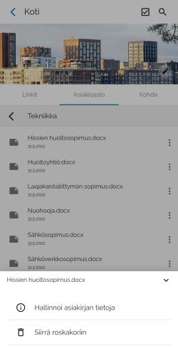 Voit tässä kohtaa siirtää asiakirjan myös roskakoriin valitsemalla "Siirrä roskakoriin"