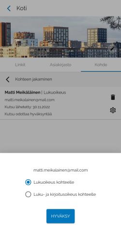 Poistamalla henkilön kohteeltasi poistuu häneltä kaikki oikeudet ja näkyvyys hallinnoimaasi kohteeseen.