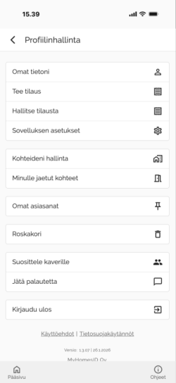 Täällä sijaitsee ne toiminnallisuudet, joilla hallitset itseäsi ja kohteitasi koskevia ylimpiä toimintoja.