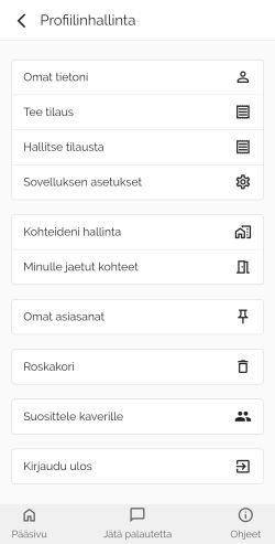 - Valitse näkymän oikean ylänurkan henkilöikonista "Profiilinhallinta"