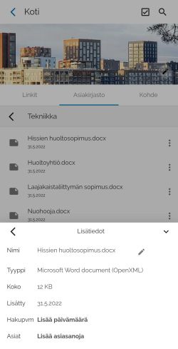 - Valitse kansio, josta haluat tarkastella tai muokata asiakirjan tietoja