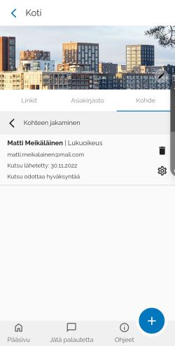 Poistamalla henkilön kohteeltasi poistuu häneltä kaikki oikeudet ja näkyvyys hallinnoimaasi kohteeseen.