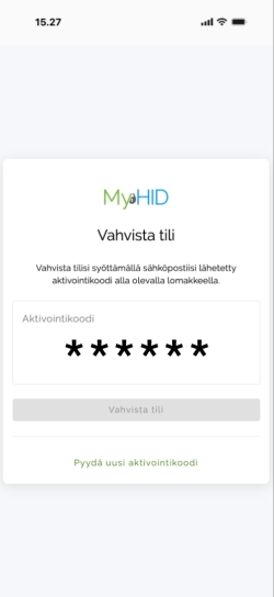 - Kopioi sähköpostiisi saapunut aktivointikoodi aktivointikoodi kenttään